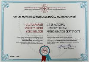 Muhammed Nebil Selimoğlu muayenehanesi, Türkiye Cumhuriyeti Sağlık Bakanlığı tarafından verilen Uluslararası Sağlık Turizmi Yetki Belgesi ile yurt dışından gelen hastalara resmi ve güvenli sağlık hizmeti sunma yetkisine sahiptir.